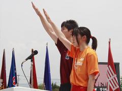 宣誓者鳥栖工業高校 陸上部主将 3年 佐賀北高校陸上部主将 3年 |